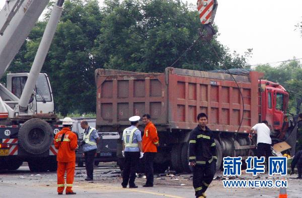 當天早晨5時許,在大連市202國道約1672公里處,肇事駕駛?cè)擞谀绸{駛小客車駛?cè)肽嫦蜍嚨溃c相對方向車道內(nèi)行駛的大貨車相撞,小型客車上3人當場死亡,另外7人搶救無效也先后死亡。新華社發(fā)