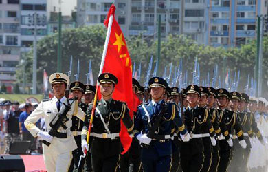 7月2日,游客乘坐電梯準備開始參觀。臺北故宮博物院藏品共約60萬件,分為書法、古畫、碑帖、銅器、玉器、陶瓷、文房用具、雕漆、琺瑯器、雕刻、刺繡及緙絲、圖書、文獻等14類。博物院經常維持有5000件左右的書畫、文物展出,并定期或不定期舉辦各種特展,每天都吸引眾多參觀者。新華社記者 費茂華 攝