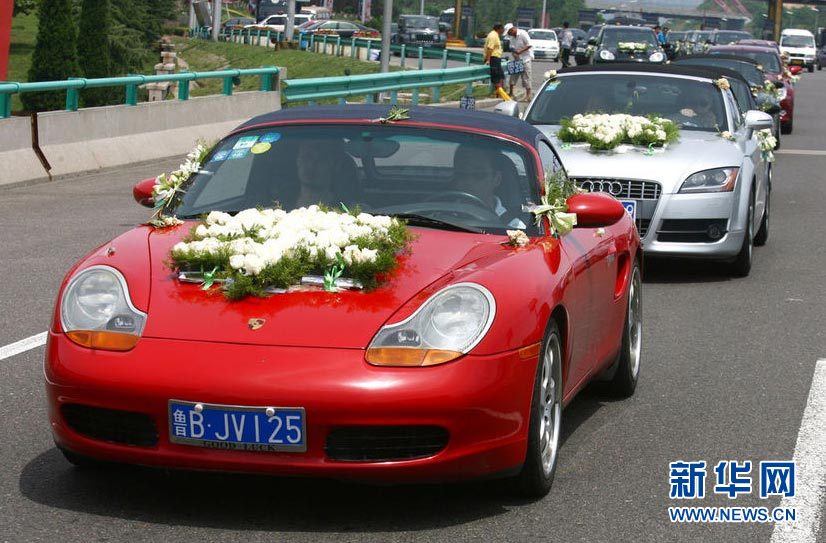 7月7日,山東青島,紅色法拉利引領著由43輛名車組成的豪華婚車隊行進在市區(qū)馬路上,引來無數關注。據悉,這是北京的一位富二代在香格里拉酒店舉辦訂婚儀式,新娘是濟南某綜藝電視臺的節(jié)目主持人,即墨馬山人。按照青島傳統(tǒng),男方要給女方訂親錢,這位新郎給了88888888元的訂親錢。另外加上租車、宴席等,男方的花費已經過億。