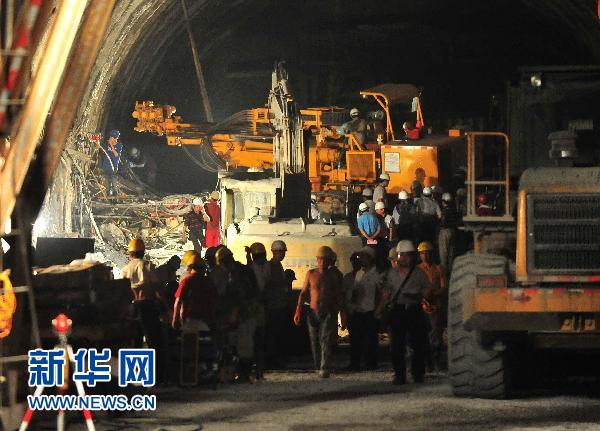 7月14日,救援人員在挖掘救援通道。當日上午,發生坍塌事故的新建南黎鐵路那適2號隧道次發生事故的隧道再次發生塌方,救援人員與被困人員失去聯系,使得救援工作受阻。目前,救援指揮部正在積極探明坍塌情況,調整救援方案。 新華社記者 黃孝邦 攝