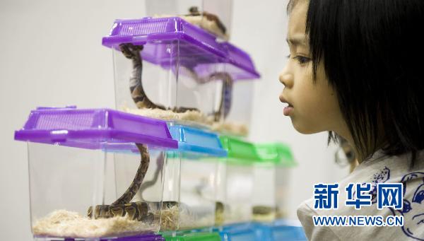 當(dāng)日,由香港動(dòng)物教育研究中心主辦的“2010香港國(guó)際爬蟲節(jié)”在香港九龍國(guó)際展貿(mào)中心舉行。 新華社記者 呂小煒 攝