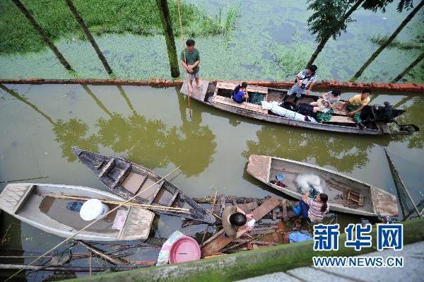 由于近日連續(xù)遭受暴雨襲擊,湖北省洪湖市新灘鎮(zhèn)內(nèi)澇嚴(yán)重,農(nóng)作物損失慘重。正常水位23米多的沙套湖目前已經(jīng)漲至25.91米,創(chuàng)歷史最高水位。位于湖區(qū)內(nèi)的洪湖市新灘鎮(zhèn)沙套湖大垸已經(jīng)被水圍困9天,由于降雨還在繼續(xù),水難以排出,村民們的食物和用水難以為繼。目前,受災(zāi)村民正在展開(kāi)各種方式的自救行動(dòng),守護(hù)自己的家園,等待洪水退去。新華社記者 郝同前 攝
