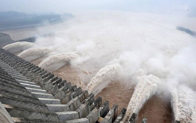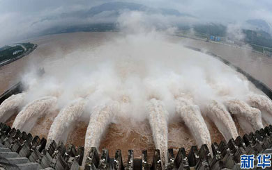 7月20日拍攝的三峽左岸電站外景。