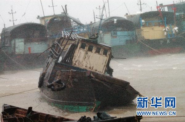 7月22日,廣東省陽江市沙扒漁港漁船遭到強風(fēng)吹襲。