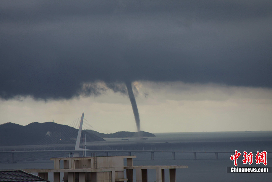 深圳灣西南部臨近香港一側(cè)海面上27日上午9點(diǎn)前后出現(xiàn)了“水龍卷”自然奇觀,整個過程長達(dá)十多分鐘,當(dāng)時在深圳灣上空積雨云下方伸出漏斗形狀的黑色云柱,先后有3個水龍卷形成,也有蛇口市民報告稱看到了4條,最長的水龍卷從海面旋轉(zhuǎn)直上,遠(yuǎn)遠(yuǎn)望去高達(dá)數(shù)百米直沖天際,蔚為壯觀。