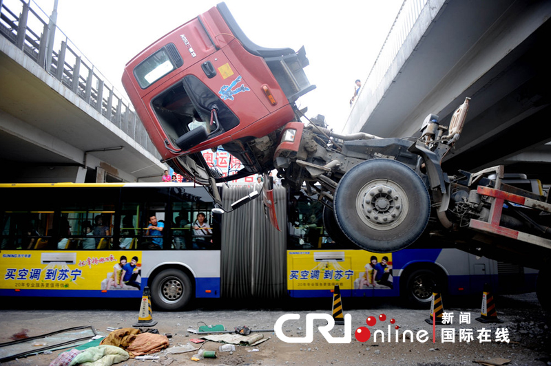 2010年8月2日,北京,距聯(lián)想橋東300米左右的輔路上,一輛大貨車的車廂卡在過街天橋下面,導(dǎo)致車內(nèi)的3人均不同程度受傷,北三環(huán)聯(lián)想橋西向東輔路堵塞。