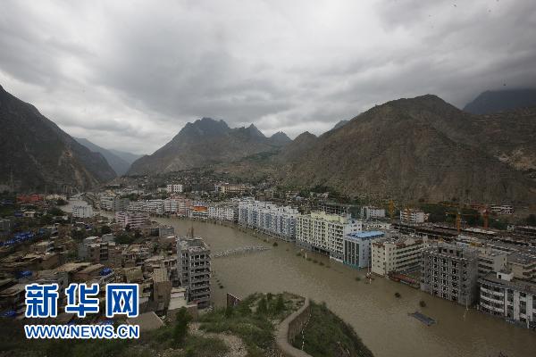8月16日,白龍江水橫穿舟曲縣城而過,兩岸民房依然浸在水中。白龍江從甘肅省甘南藏族自治州舟曲縣城穿城而過。小城不大,僅5萬余人,即便沒有往來,很多人也似曾相識。舟曲女孩嚴盼從小生活在白龍江邊,江水滋潤的兩岸土地,是她引以為傲的“藏鄉江南、隴上桃花源”。 8月7日深夜的一場強降雨改變了一切。由此引發的特大山洪泥石流將熟睡中的山間小城撕裂了一道口子,180萬立方米泥石頃刻間把縣城由北向南約5公里長、500米寬的區域夷為平地,所經之處房屋被摧毀掩埋,生命猝然消逝。截至16日,已有1254人遇難,490人失蹤。泥石流還裹挾著大量沙石沖進白龍江,形成了巨大的堰塞湖。白龍江河床平均抬升6米多,河道由70多米驟然擴寬到100多米,兩岸民房被淹。一夜之間,昔日寧靜的小城傷痕累累,滿目瘡痍,半數居民受災。 援助從四面八方匯至白龍江畔。近10天過去了,救援工作仍在進行,人員和車輛在小城里忙碌穿梭,解放軍和武警官兵晝夜不停地疏通河道,清理積淤。城市一點點恢復生機。如今,白龍江潰壩險情基本排除,但江水依然淹沒著兩岸1-2層的民房。 8月15日,年輕的嚴盼在江水淹沒的舟曲街頭向記者展示她的心愿:“水下去,家鄉平平安安”。古老的白龍江恢復平靜,小城重現美麗安寧,這不僅僅是嚴盼和舟曲人的心愿,也是所有關心舟曲的人們共同的心愿。新華社記者 邢廣利攝