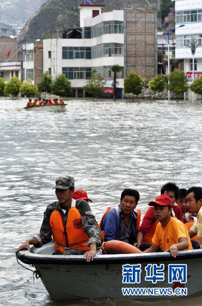 8月17日,舟曲縣災(zāi)區(qū)堰塞湖水位有所下降,但縣城主要街道和房屋仍浸泡在水中,救援官兵的沖鋒舟為舟曲受災(zāi)群眾開辟了一條水上通道,大大方便了受災(zāi)群眾的出行。新華社記者高健鈞攝