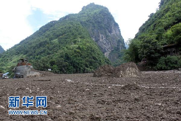 泥石流沖擊現場寬達300多米(8月18日攝)。 8月18日1時30分,云南怒江貢山發生泥石流災害,已造成67人失蹤。云南省政府應急辦提供消息,據最新統計,怒江州貢山縣普拉底鄉泥石流災害已沖毀路基200多米,石拱橋1座。目前貢山縣城交通電力和通訊全部中斷。新華社發(鐘志芳攝)