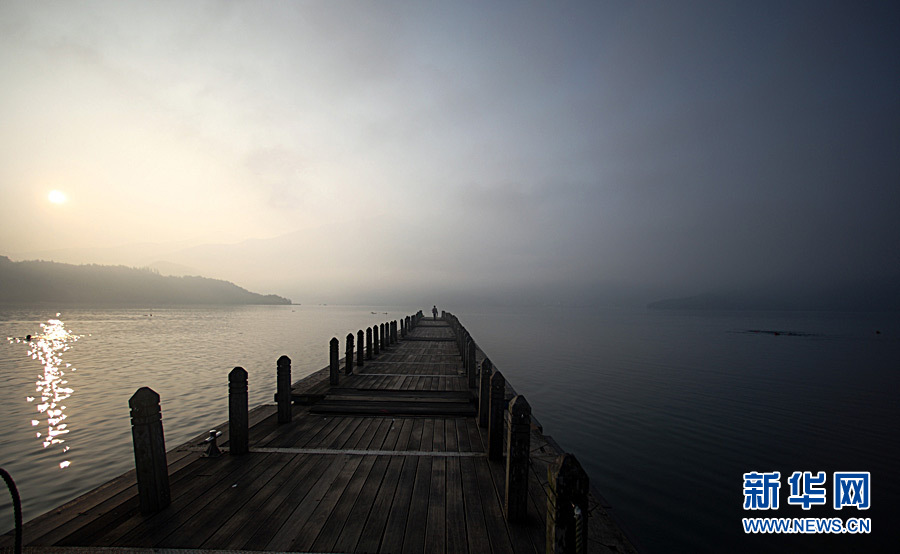 8月22日清晨,日月潭的朝霧碼頭依然在“沉睡”中。黎明時分,薄霧如紗將日月潭輕輕籠罩,湖盡頭的山色若有若無,湖水中只有早起晨練的人們偶爾掀起的漣漪,為靜悄悄的湖面增添一點點跳躍的波瀾,也更襯出靜悄悄的日月潭晨光。新華社記者費茂華攝