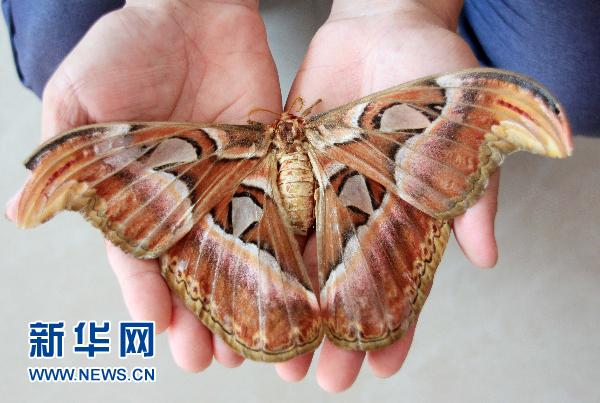 據了解,這只巨蛾展翅寬度超過23厘米,長約11厘米。 新華社發(肖春根 攝)