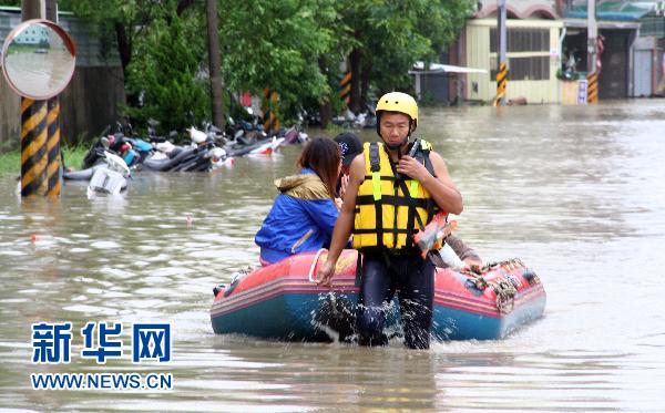 9月20日,在臺灣臺南縣仁德鄉保安村,救援人員動用橡皮艇將被困居民救出。臺風“凡亞比”給臺灣南部帶來罕見暴雨,部分地區出現嚴重淹水情況,給當地經濟、生活帶來嚴重影響。為應對災情,臺灣13個縣、53個鄉共撤離約1.2萬人,初步統計共有76人受輕傷。新華社發