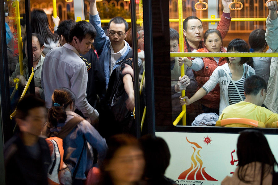 廣州免費乘車首日公交地鐵擠爆 ( /10)