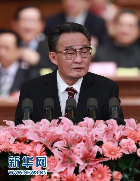 3月10日,十一屆全國人大四次會議在北京人民大會堂舉行第二次全體會議。全國人民代表大會常務委員會委員長吳邦國作全國人民代表大會常務委員會工作報告。新華社記者 龐興雷攝