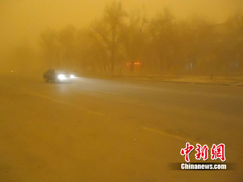 沙塵暴侵襲新疆 能見(jiàn)度不足百米 2011-03-13 06:55