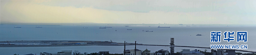 這是海口市北部海平面出現的海市蜃樓景觀(5月9日攝,拼接照片)。 5月9日下午4時左右,海口市沿海出現海市蜃樓奇觀,持續一個小時左右。海市蜃樓是一種光學現象。春夏、夏秋之間,萬里無云,海水與水面的空氣層易出現較大溫差。水溫低于空氣,這時水面的氣層與空中的氣層密度便發生較大差異,光線通過密度不同的氣層便會發生折射或全反射,就形成了海市蜃樓奇觀。新華社記者 郭程 攝