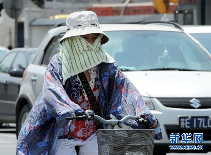 7月3日,一名蘇州市民“全副武裝”在烈日下出行。當(dāng)日,江蘇蘇州驕陽似火,最高氣溫攀升至37.2攝氏度。新華社發(fā)(杭興微 攝)