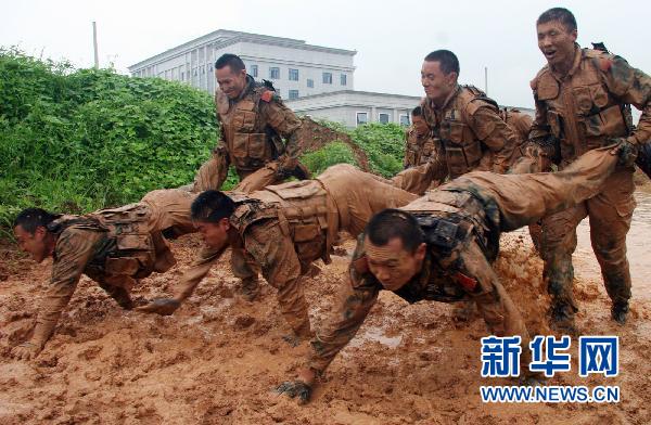 7月11日,武警四川總隊成都市支隊隊員進行體能極限訓練。當日,武警四川總隊成都市支隊“魔鬼周”訓練在成都龍泉山拉開帷幕,該支隊針對任務形勢的復雜多樣,把特警隊員拉進深山叢林和灘涂地開展“走、打、吃、住、藏”等多課目訓練,挑戰隊員生理和心理極限,有效提高官兵遂行多樣化任務的能力。新華社發(吳書滿攝)