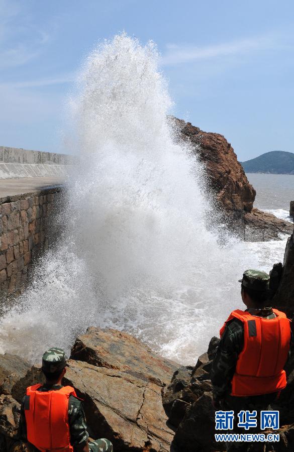 8月4日,受強臺風(fēng)“梅花”影響,浙江臺州釣浜港防浪堤海邊掀起巨浪,邊防官兵加強警戒嚴防游客接近危險區(qū)域。今年第9號超強臺風(fēng)“梅花”正在向我國東南沿海逐漸靠近。浙江省氣象臺預(yù)計8月6日前后,“梅花”可能對浙江產(chǎn)生嚴重影響,部分地區(qū)有大暴雨,局部特大暴雨,并伴有強風(fēng)。新華社發(fā)(郟策 攝)