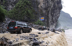湖北興山暴雨致交...