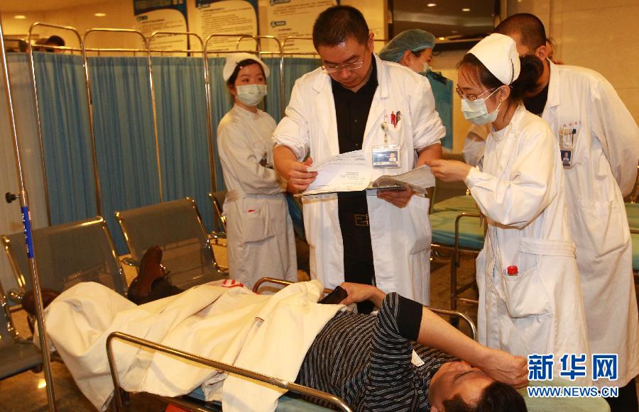 9月27日,上海瑞金醫(yī)院的醫(yī)護(hù)人員查看傷員的傷勢(shì)。