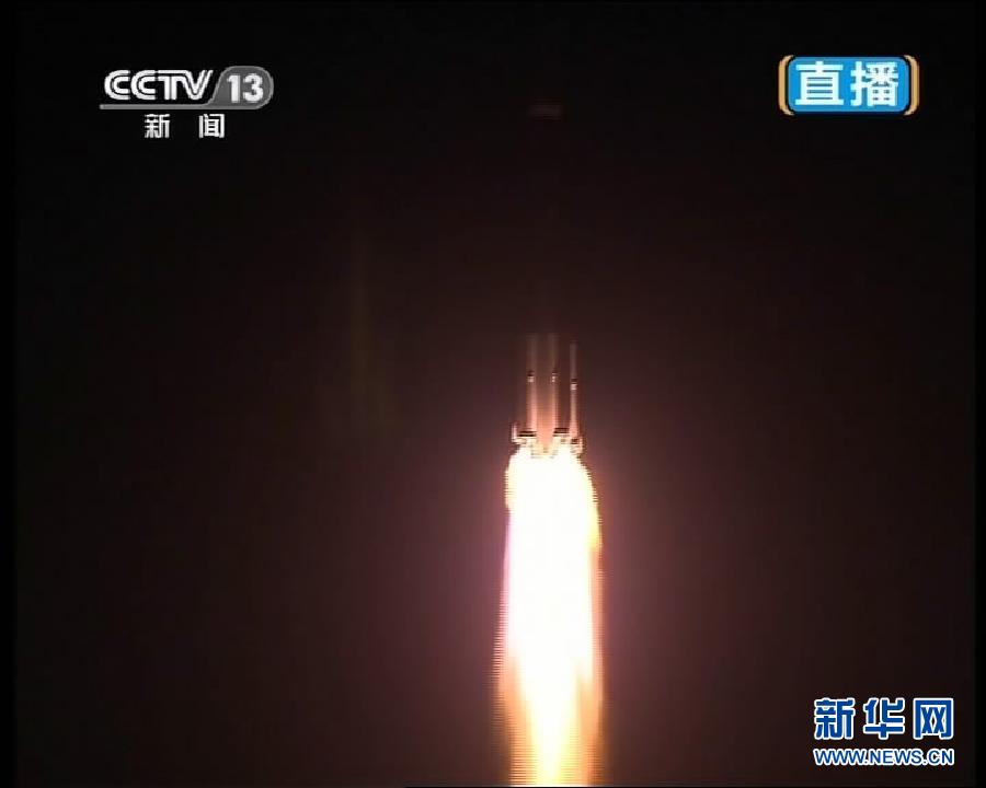 9月29日,中國(guó)在酒泉衛(wèi)星發(fā)射中心用長(zhǎng)征二號(hào)F運(yùn)載火箭將天宮一號(hào)目標(biāo)飛行器發(fā)射升空。 新華社發(fā)(視頻截圖)