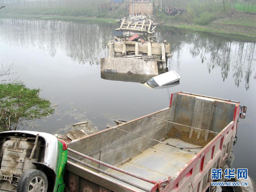 河南項城發生橋梁坍塌事故 4車落水 ( /2)