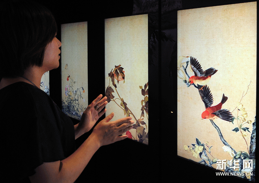 (1)11月26日,觀眾在“四季故宮”新媒體藝術展上欣賞清代郎世寧畫作《仙萼長春圖》。觀眾對著畫發出聲音,畫中鳥就會翩翩飛起。