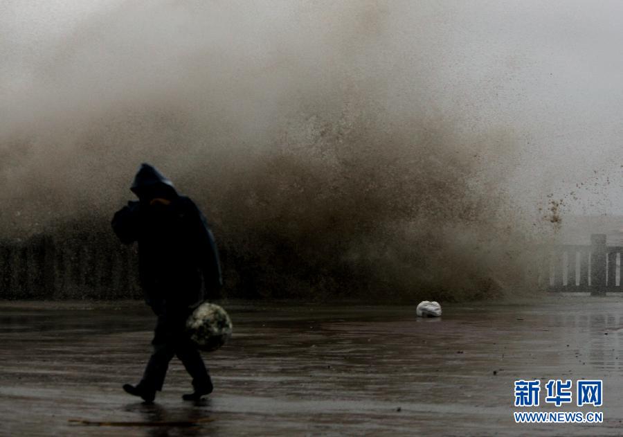 11月30日,一名拾海人從江蘇連云港攔海大堤海岸邊巨浪前經過。當日,受冷空氣影響,連云港出現風暴潮,沿海海面陣風10級。受風暴潮影響,連云港海事局對船舶實施了臨時交通管制,港口全面停航,41艘在泊船只和63艘在錨泊船只進出港受到影響。海上客運航線同時全部停航,450多名人員海上出行計劃受到影響。新華社發(王健民 攝)
