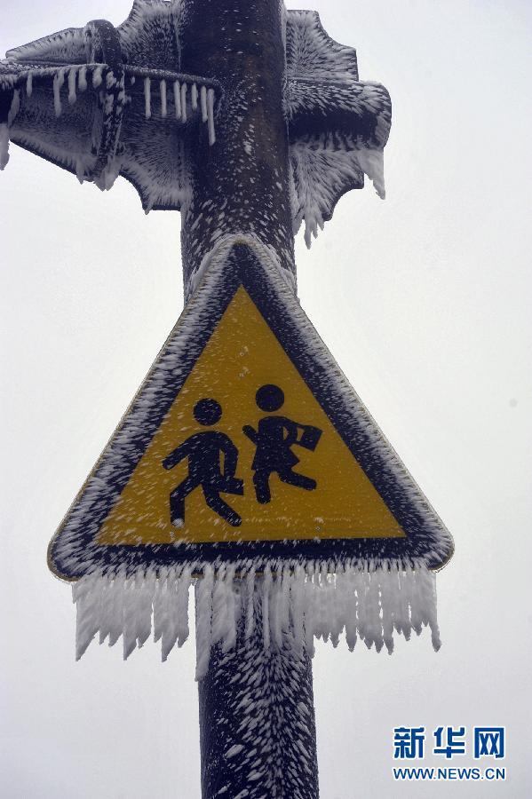 1月23日在京港澳高速粵北南嶺韶關(guān)樂(lè)昌段沿途拍攝的冰霧景觀。受強(qiáng)冷空氣影響,廣東正遭遇寒冷的春節(jié)。廣東公路出省“咽喉要道”京港澳高速部分路段溫度已經(jīng)降至零下,粵北韶關(guān)樂(lè)昌段沿途能見(jiàn)度10米左右,霧鎖南嶺,道路結(jié)冰,行車(chē)緩慢。新華社發(fā)(李作描 攝)