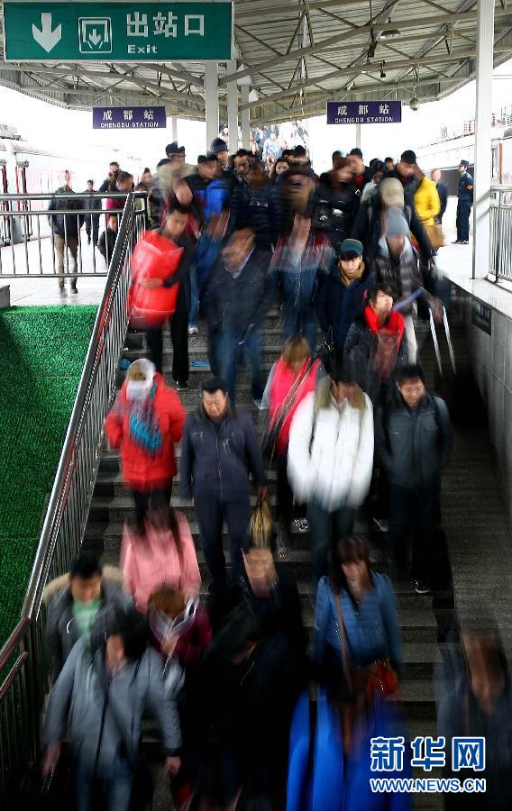 元宵節(jié)過后,隨著外出務工流、學生流和探親客流的疊加,成都火車站迎來節(jié)后新一輪返程高峰。據成都火車站負責人介紹,從2月5日起成都火車站每天發(fā)送旅客近9萬人,客流高峰將持續(xù)到3月上旬。新華社發(fā)(薛玉斌 攝)