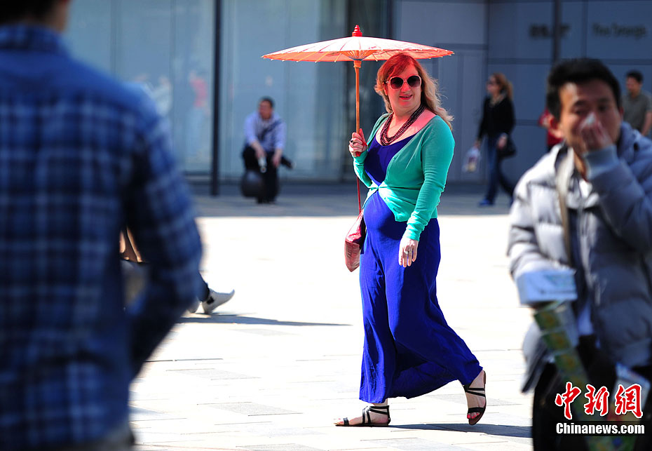 3月27日,北京最高氣溫突破20度,刷新今年最高值。圖為街頭行人薄裝出行。中新網記者 金碩 攝
