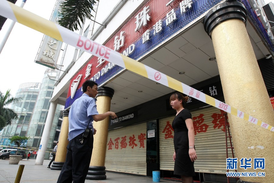 5月29日上午,佛山南海黃岐步行街某珠寶店被劫,損失估價上百萬元的黃金、鉑金首飾。半小時后警察抓獲兩名犯罪嫌疑人,追回首飾。