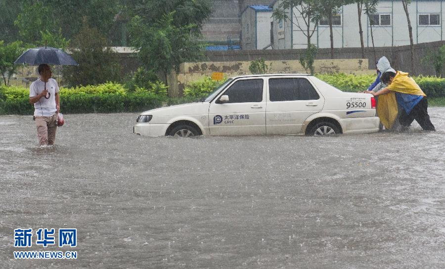 7月26日,一家保險公司的車輛在水中熄火。當日,天津遭受暴雨襲擊,多處隧道被淹無法通行,個別低洼地段積水嚴重,給人們出行帶來不便。 新華社記者岳月偉攝