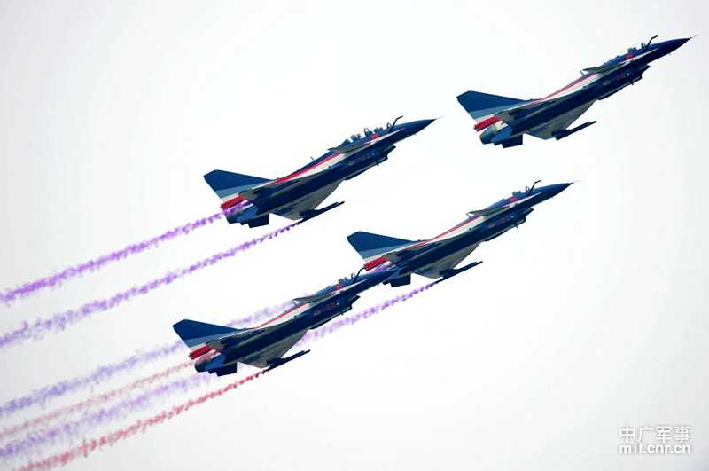 閉幕式上,空軍八一表演隊精彩技藝,為十萬觀眾送上視覺盛宴 沈玲攝