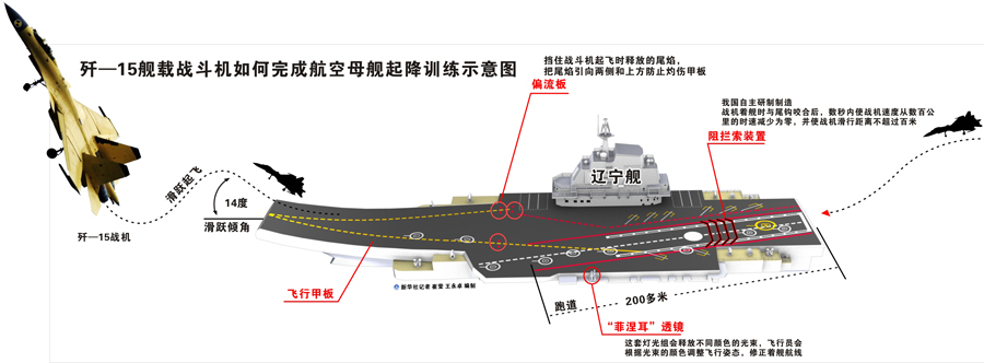 圖表:殲—15艦載戰斗機如何完成航空母艦起降訓練示意圖 新華社記者 崔瑩 王永卓 編制