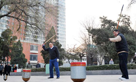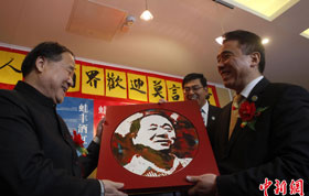 12月9日,在瑞典首都斯德哥爾摩,2012年諾貝爾文學(xué)獎(jiǎng)得主、中國(guó)作家莫言(前左)與夫人杜勤蘭(前右)在當(dāng)?shù)厝A人華僑舉辦的歡迎宴會(huì)前與眾人一起包餃子。新華社記者武巍攝