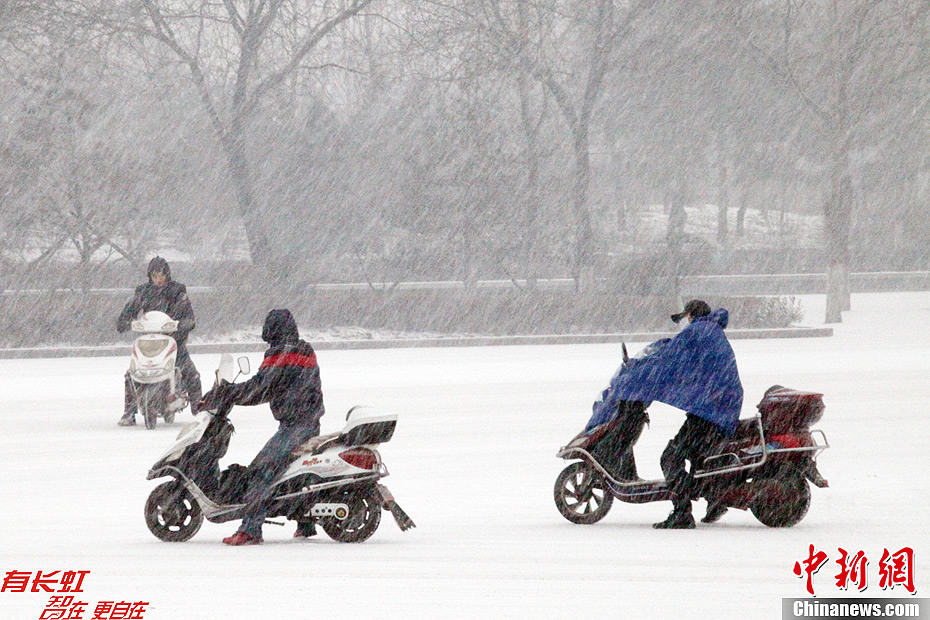 12月13日,山西太原迎來強降雪天氣,市民冒雪出行。中央氣象臺發布消息,未來三天,中國中東部地區將有大范圍雨雪天氣過程,華北東部和南部、黃淮北部等地有大雪,局部暴雪或雨夾雪。中新社發 劉佳 攝