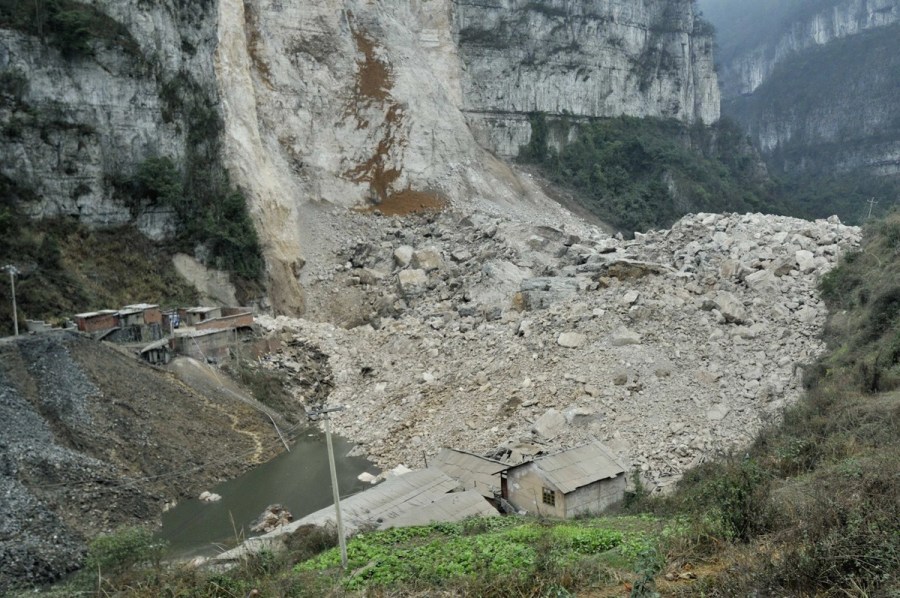 2月18日11時許,貴州黔東南州凱里市龍場鎮漁洞村發生一起山體滑坡事故,滑坡量約10萬立方米,造成多人被困。