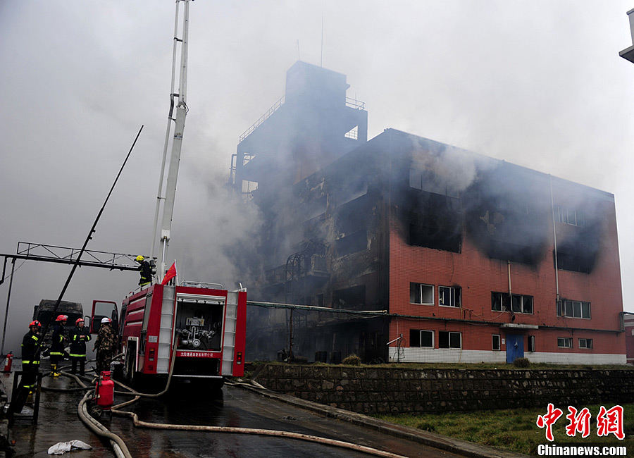 2月25日,貴陽市白云區麥架鎮的柏絲特化工有限公司一生產車間發生原材料泄漏燃燒事故,目前已造成該廠5名員工受傷,近3萬名民眾轉移。圖為已被燒焦的工廠車間。中新社發 李克 攝