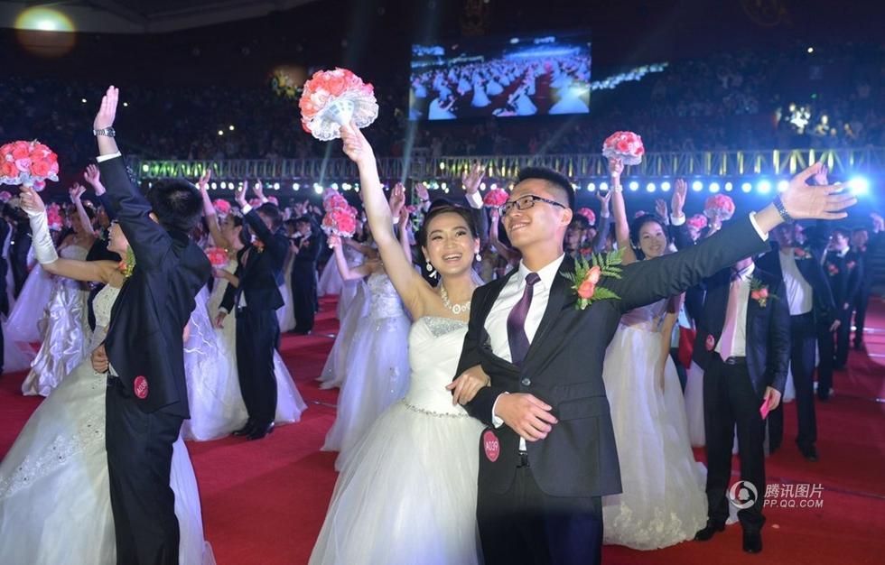 2014年05月17日,杭州,218對新人參加“緣定浙大”校友集體婚禮。浙江大學建校117周年慶祝活動之一的“緣定浙大”校友集體婚禮在紫金港校區舉行,218對新人相約回到闊別已久的校園,許下相伴一生的諾言。