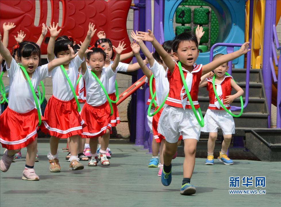 5月30日,在北京市西城區長安幼兒園,小一班小朋友表演圈操。當日,“快樂運動我成長·長安幼兒園第三屆健身節閉幕式”舉行,小朋友們在老師的帶領下為家長表演了節目,并與家長一同參加多種健身游戲,在運動中快樂迎接六一國際兒童節到來。新華社記者 馬寧 攝