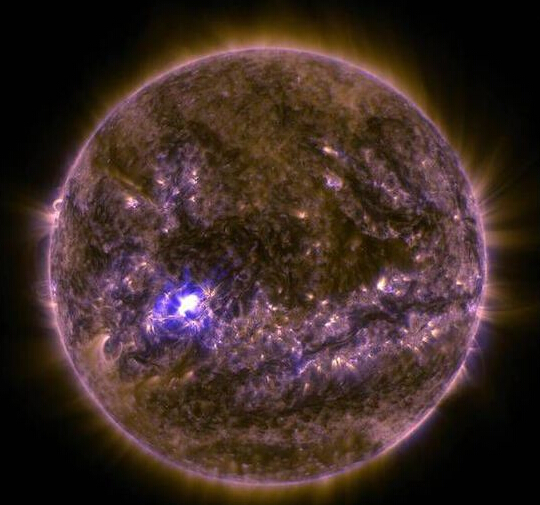 北京3月12日凌晨0:22,太陽(yáng)動(dòng)力學(xué)天文臺(tái)SDO捕捉到一個(gè)巨大的X2.2級(jí)的太陽(yáng)耀斑,這個(gè)太陽(yáng)耀斑來(lái)自于一個(gè)太陽(yáng)黑子(AR12297)活躍區(qū),這是這是太陽(yáng)動(dòng)力學(xué)天文臺(tái)2015年捕捉到的第一個(gè)X級(jí)別太陽(yáng)耀斑。圖片來(lái)源:NASA官網(wǎng)