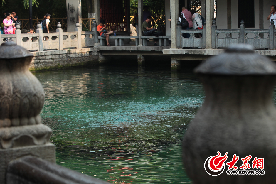 5月27日,受多日高溫少雨影響,趵突泉的“三股水”噴涌乏力。當日,濟南趵突泉水位降至27.72米,再次向27.6米的紅色警戒線靠近。自5月12日趵突泉水位達到27.93米后,水位快速回落,截至27日累計下跌21厘米。大眾網(wǎng)記者 王長坤 攝