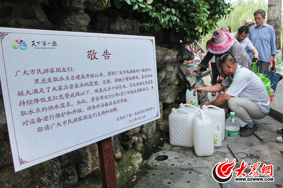 大眾網(wǎng)濟南6月16日訊(記者 王長坤)近期,因缺少有效降雨,泉水水位持續(xù)降低至紅色警戒線以下,保泉壓力巨大,已無法滿足黑虎泉取水點的供水需求,為此,黑虎泉景區(qū)將于6月17日起關(guān)閉取水點,并對設(shè)備進行維護和升級,待條件具備后及時開放。
