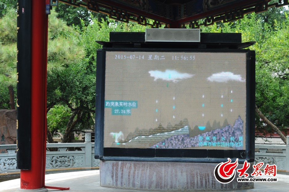 7月14日中午11點56分,趵突泉實時水位為27.34米,距離27.01米的停噴水位僅有33厘米。大眾網(wǎng)記者 王長坤 攝