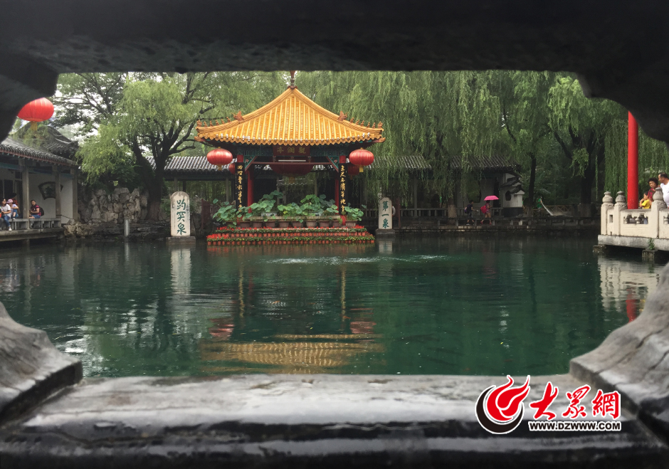 8月4日,雨中的濟南趵突泉畔。當日,趵突泉水位為27.78米,相比3日上漲了12厘米,高出紅色警戒線18厘米。