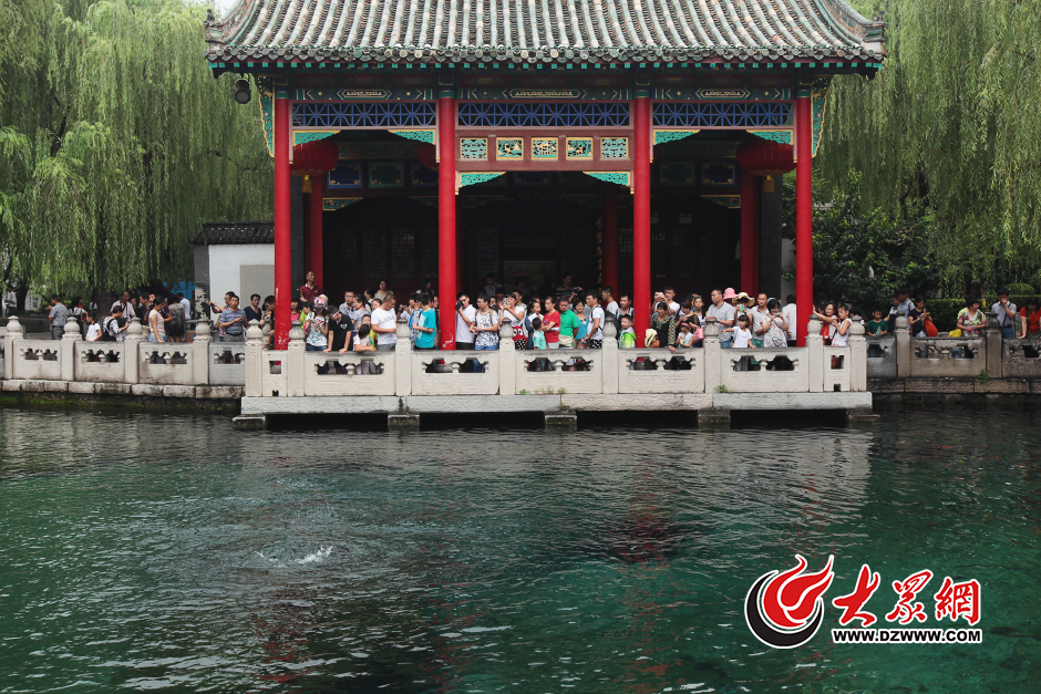 8月25日,游客在濟(jì)南趵突泉畔賞泉游玩。當(dāng)日,趵突泉水位為28.10米, 距離28.15米的黃色警戒線還差5厘米。即將于今年9月6日連續(xù)12年持續(xù)噴涌,實(shí)現(xiàn)“十二連噴”。大眾網(wǎng)記者 王長(zhǎng)坤 攝