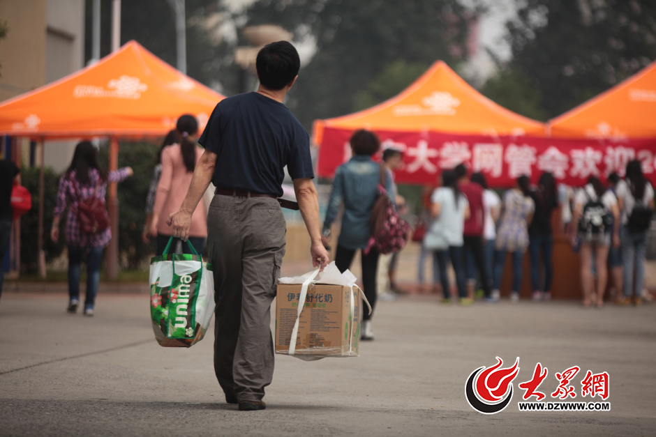 9月5日,山東大學(xué)中心校區(qū),家長在校園里為孩子搬運(yùn)行李。當(dāng)日,山東大學(xué)本科新生開始報到入學(xué)。隨同新生而來的是一支龐大的家長隊(duì)伍。校園里到處可見家長們?yōu)楹⒆用β档纳碛啊4蟊娋W(wǎng)記者 王長坤 攝