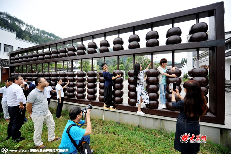 江西婺源:巨無霸木制算盤亮相 (/7)
